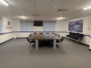 Board Room – A large bright room suitable for meetings or events with around 25 – 30 people. Tea and coffee making facilities, wifi and TV for linking to laptops. From £50.